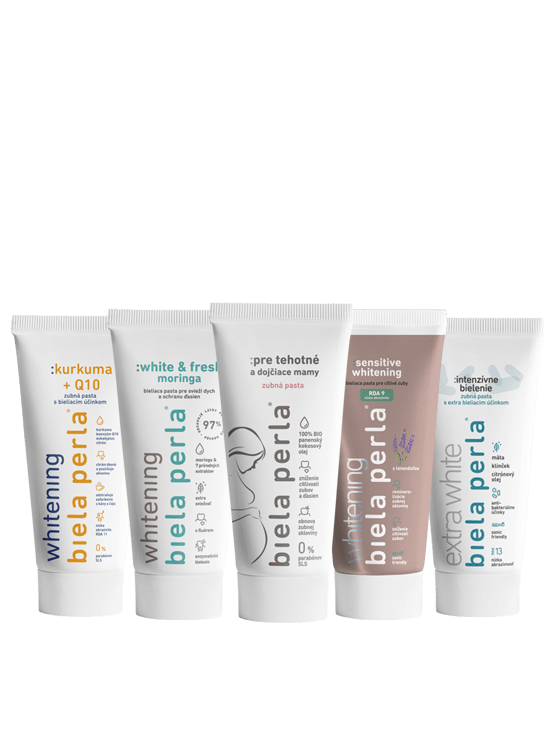 Špecializovaná zubná pasta je určená pre tehotné a dojčiace ženy, zabezpečuje komplexnú starostlivosť o ústnu dutinu s prirodzeným bieliacim účinkom.